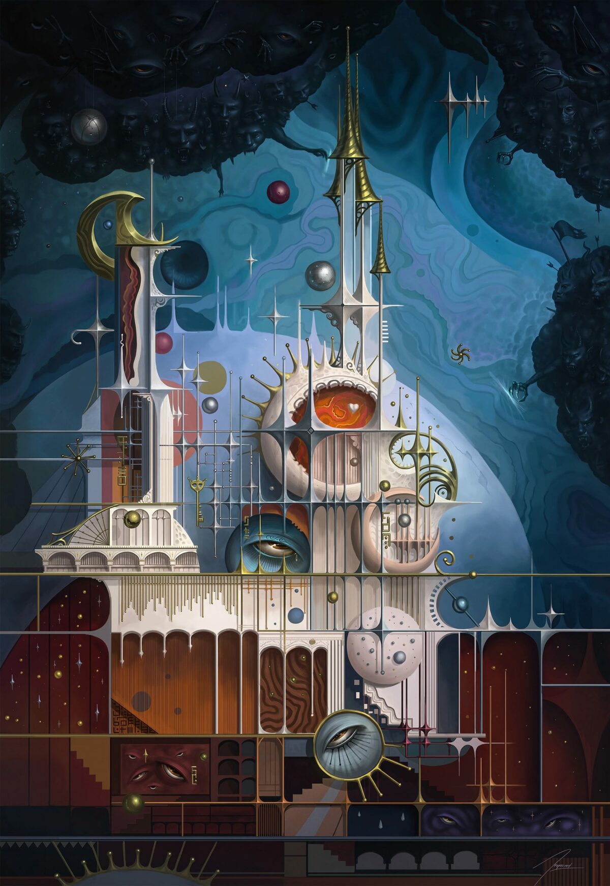 Melancholic, spiritual, and filled with abstract architecture — but always grounded in very personal experiences. I like blending digital techniques with a handmade feel. I’m really into textures, layers, and creating visuals that feel like they came from some alternate, ancient-futuristic civilization.